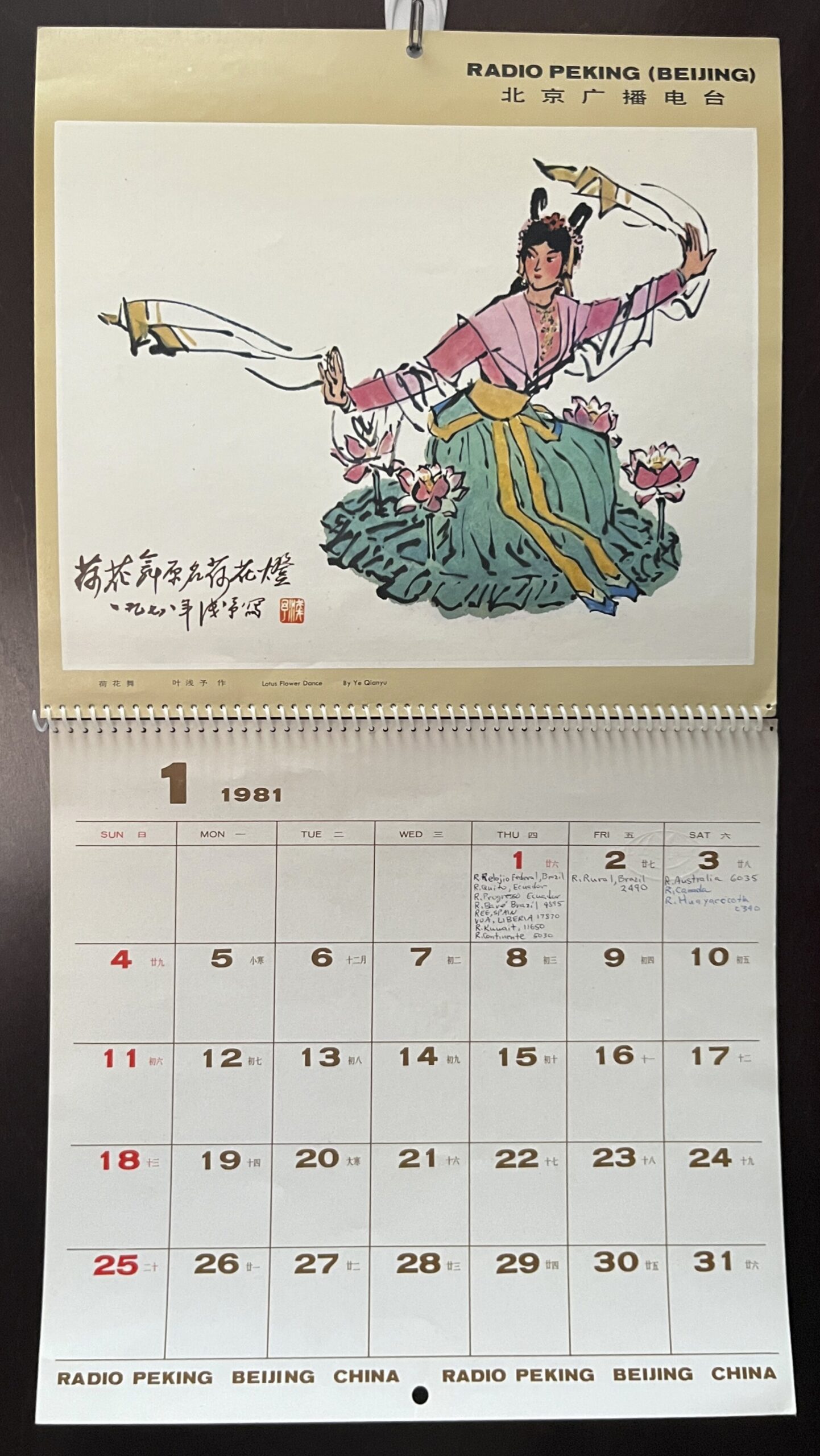 It was New Years Day 45 years ago when I opened my new Radio Peking calendar to the first page of the new year. And in that January 1 square I penciled in reception notes from what I heard on my new Realistic DX-300 receiver.