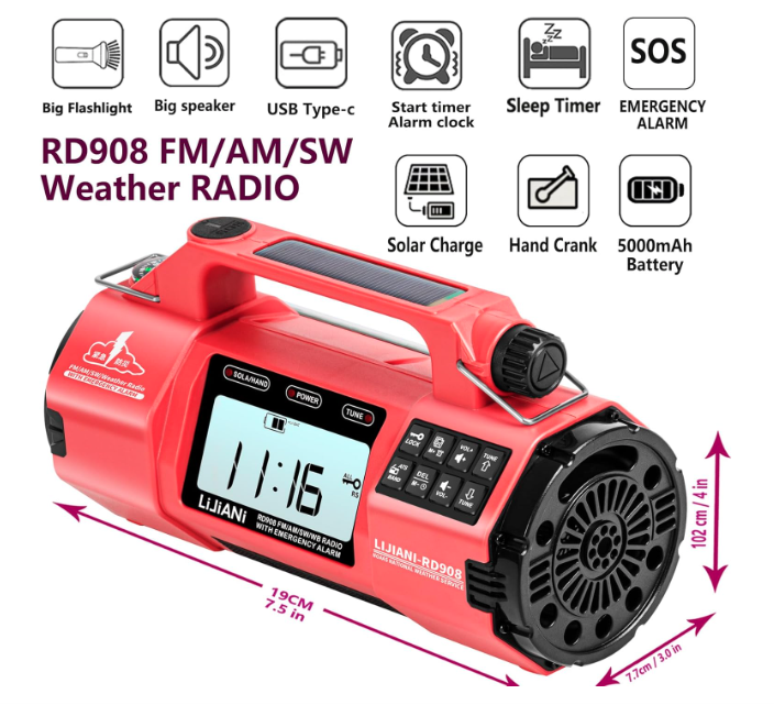 I’ve recently placed an order for the LiJiANi RD908 emergency radio, adding it to my collection of weather radios for testing and review. This model stands out with features that promise utility, durability, and a touch of style—all qualities that make it intriguing enough to warrant closer examination.