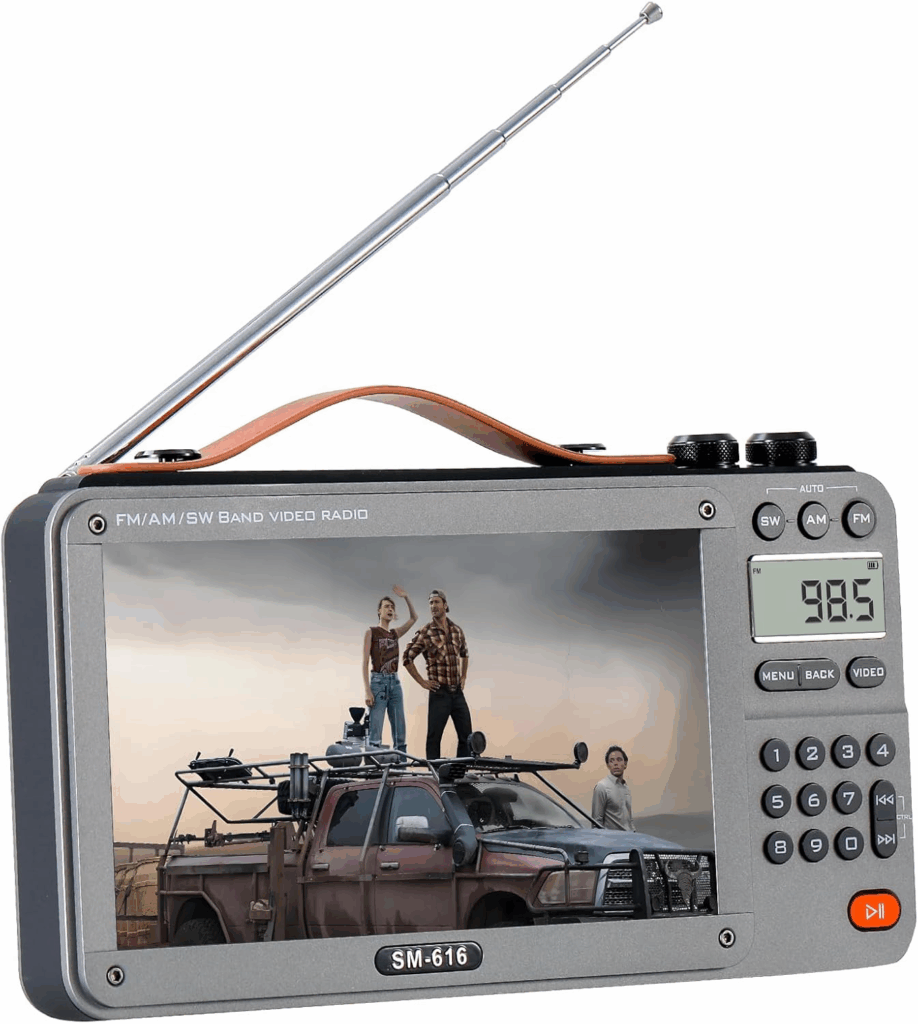 It is essentially a multimedia player with a 7″ color screen, an MP3 music player, an MP4 video player, a Bluetooth speaker and a radio, supporting FM 87.5-108MHz , AM 520-1730 kHz, SW 4.75-21.95 MHz.