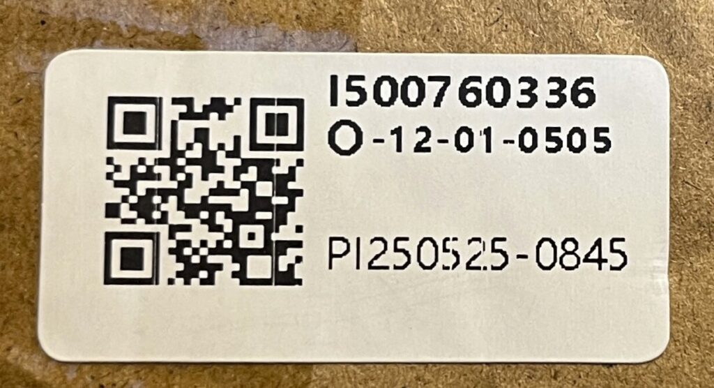 The only “documentation” was a label on the crumpled box that might be some inventory number and perhaps manufacturing date code for May 25, 2025, and a label on the back of the device saying “12V 1A Center +.”
