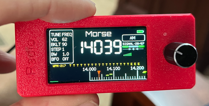 One serious problem with operation is that the bandwidth could not be set below 1 kHz, resulting in multiple CW signals overlapping. The ATS Mini firmware version 2.33 by contrast has a 0.5 kHz minimum bandwidth setting. In an admittedly short listening session, the letters T and E were all I was able to pick out from more than a dozen signals.