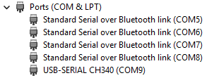 The one saying CH340 is the one to select when asked for a COM port, in my case COM-9.